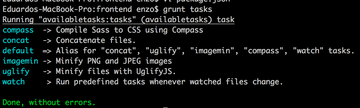 Fortunately there is a plugin that allows Grunt toe review tasks available, this plugin is grunt-available-tasks. Lets see how we can implement it in our project.